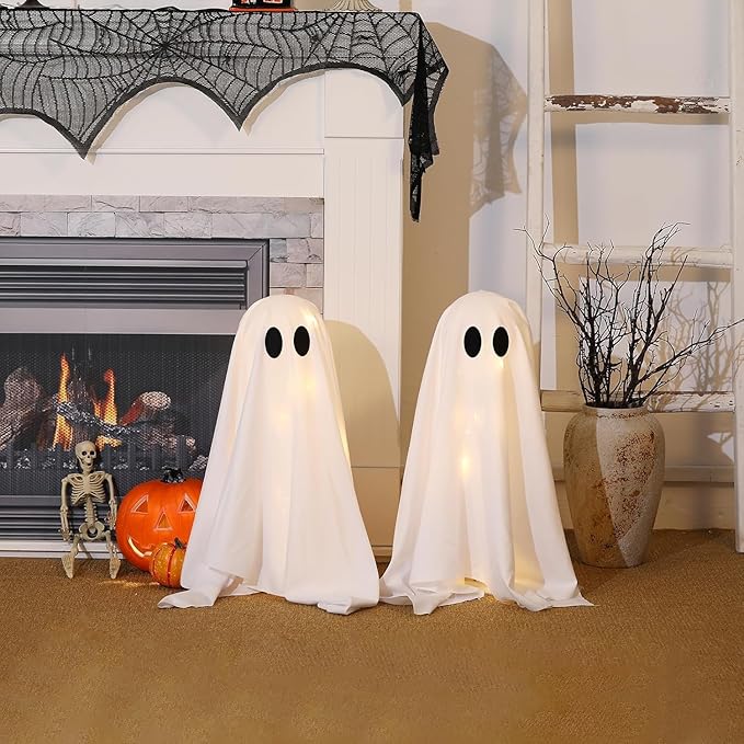 FOHOA 2-Pack White LED String Lights Spooky Ghost Decor for Outdoor Indoor