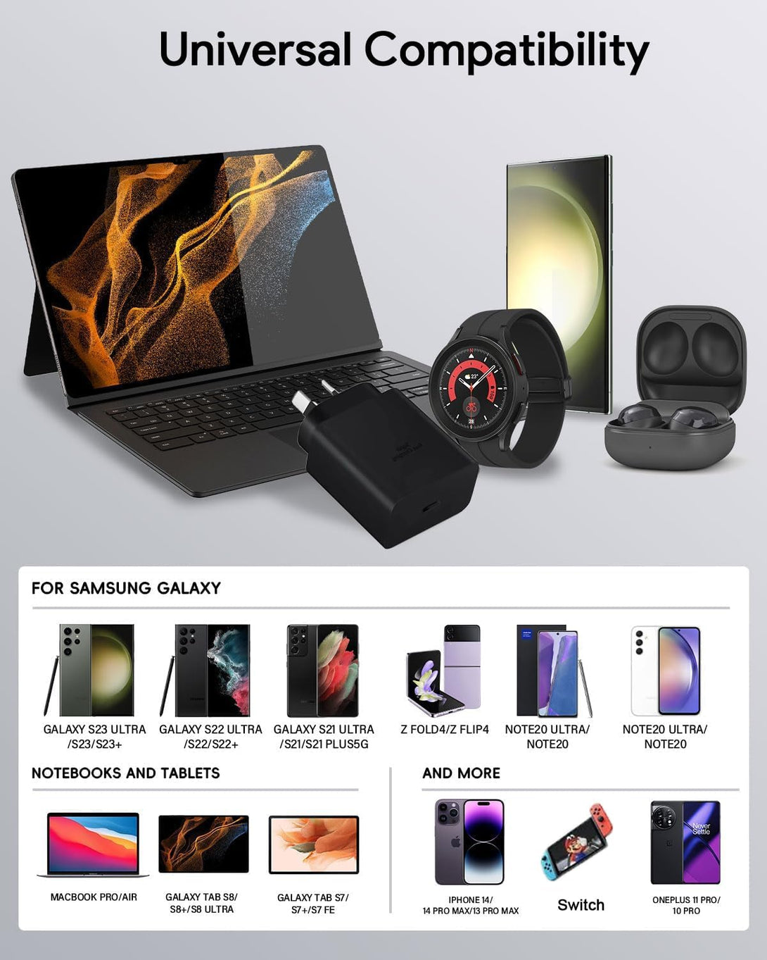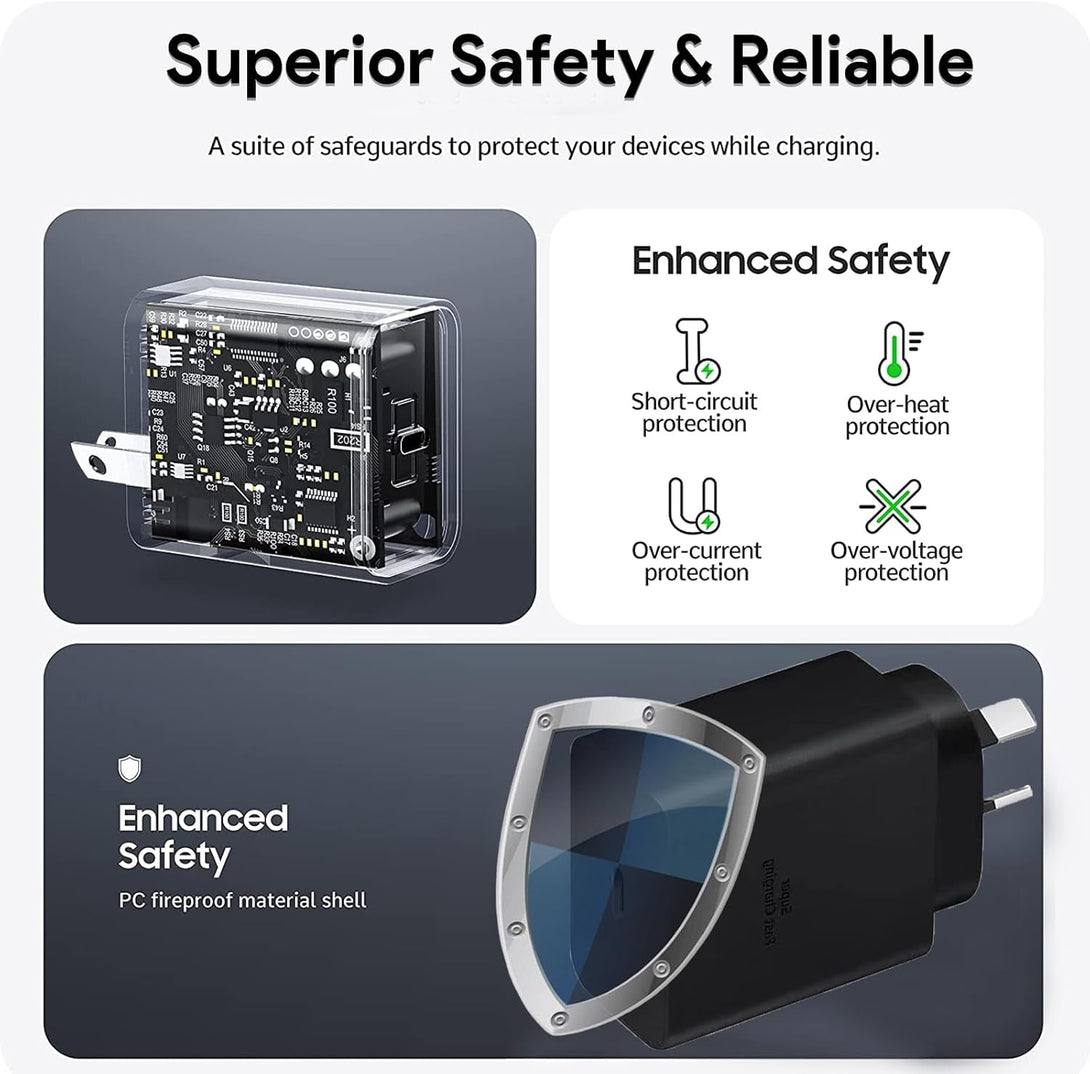 【Safety Certifications】The 45W USB-C charger carries SAA, RCM, CE, FCC, and RoHS certifications. It includes five protection systems for over-current, over-voltage, over-heating, short-circuit, and exhaustive protection during charging. 【Charging Specifications】This charger...