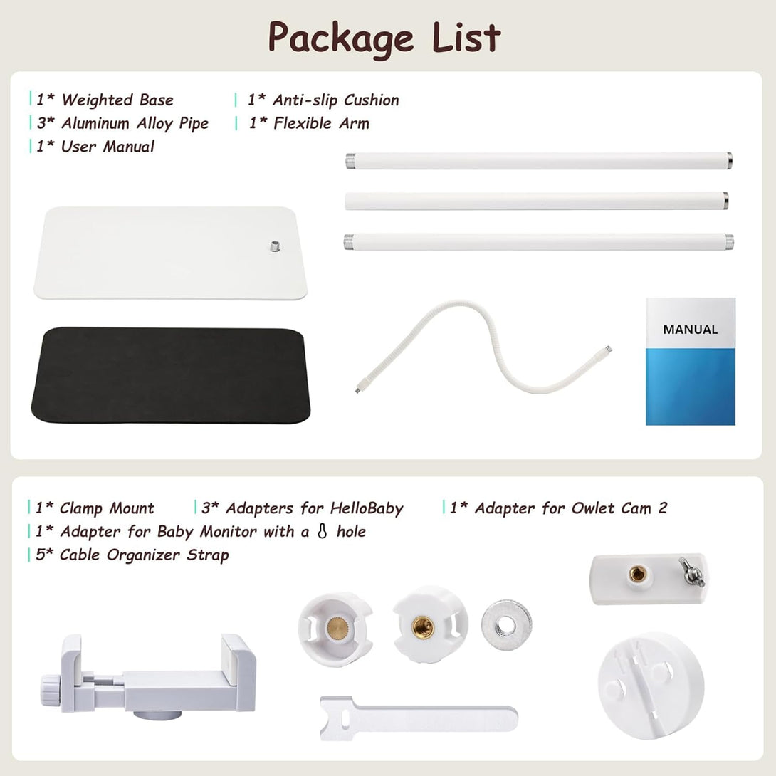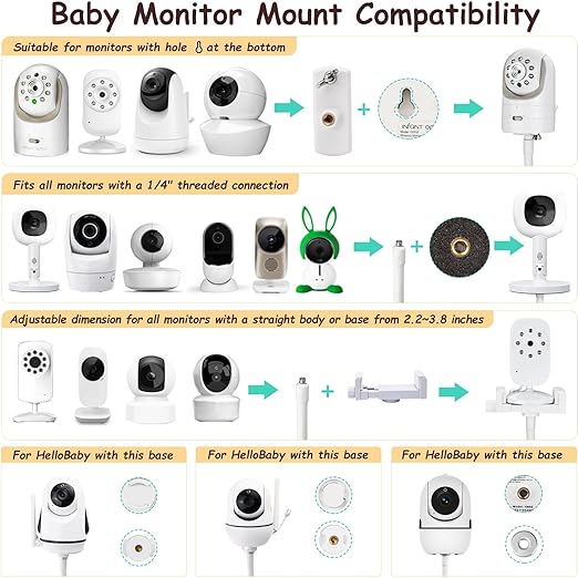 【Universal Floor Stand】This floor stand holder is compatible with most standard baby monitors. It fits devices that have a 1/4 threaded hole, including models from HelloBaby, Infant Optics, Nanit, Owlet, and...