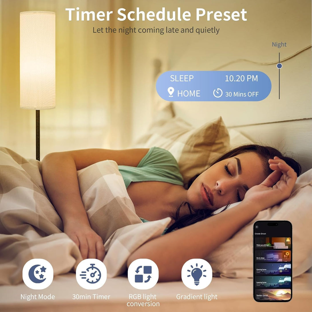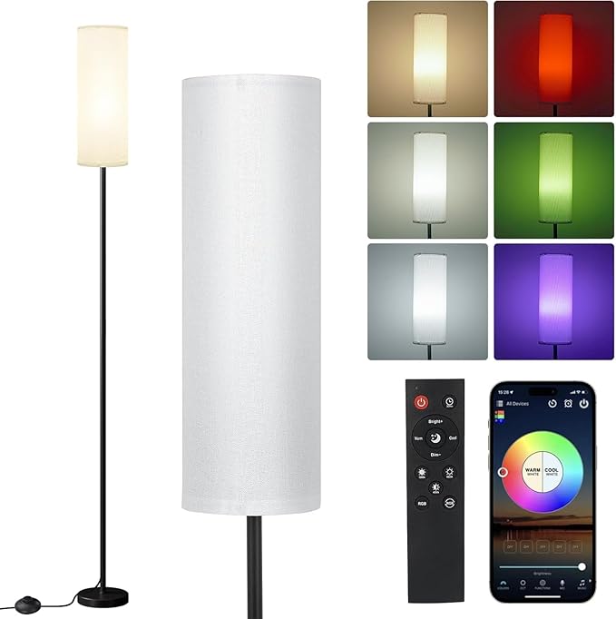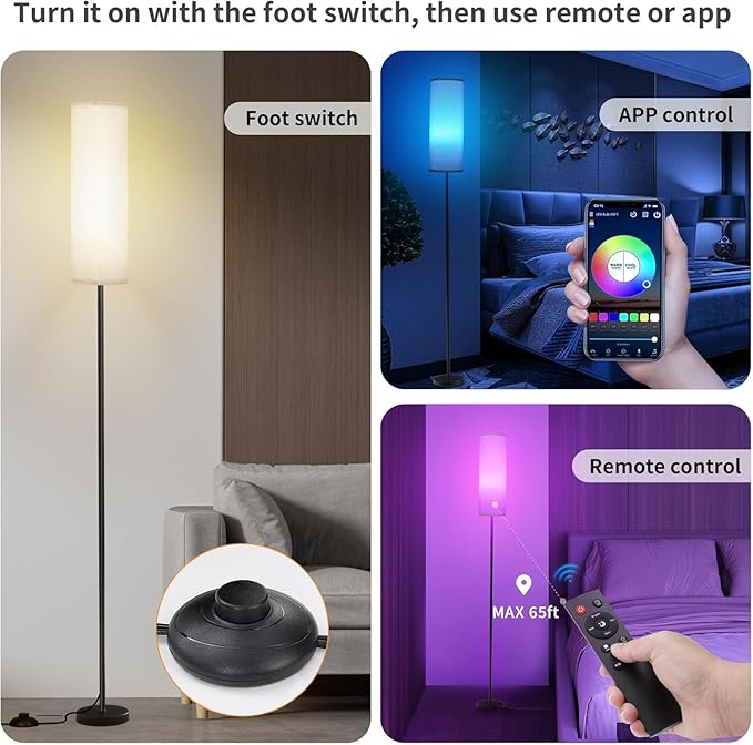【Control Options】Control this floor lamp using the Bluetooth app, remote control, or foot switch. Adjust colors, set custom scenes, and choose from three color temperatures ranging from warm white to cool...