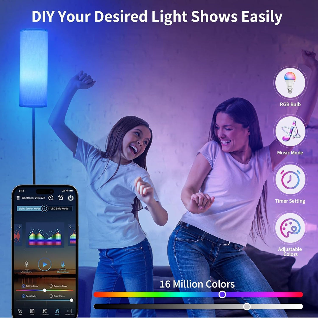 FOHOA Bluetooth Floor Lamp with App Control, Dimmable RGB Color Music Sync, Modern LED Light for Living Room