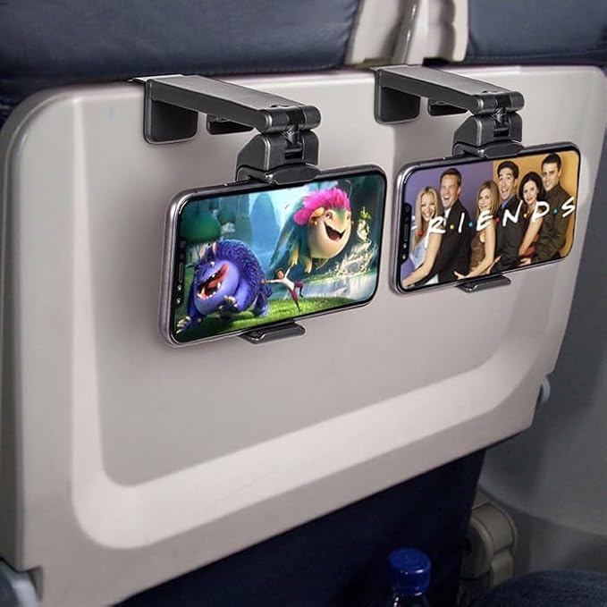 【Travel Use】Holds your phone securely on the back of an airplane seat during flight. Allows for hands-free viewing. 【Adjustable Viewing】Can be rotated to different angles for comfortable viewing. Suitable for watching...